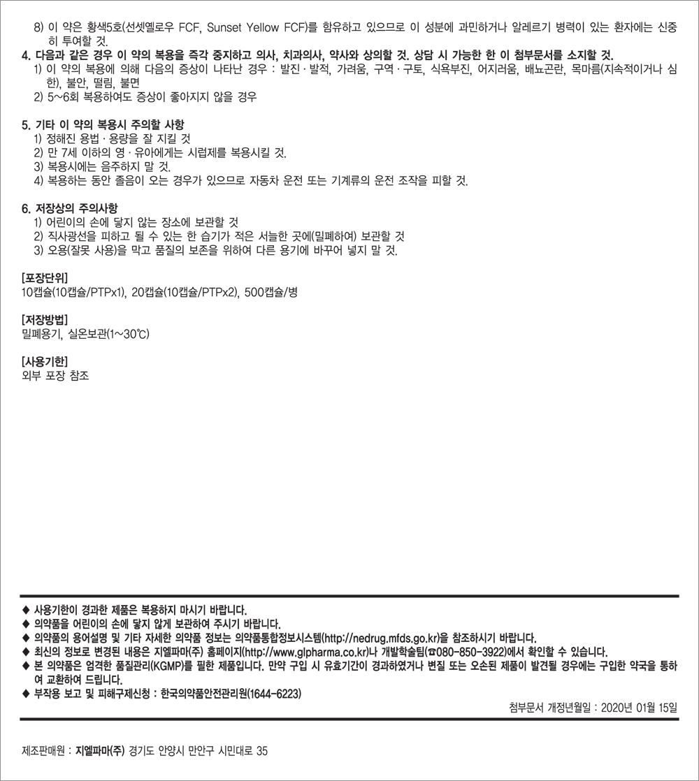 08) 이 약은 황색5호(선셋옐로우 FCF, Sunset Yellow FCF)를 함유하고 있으므로 이 성분 에 과민하거나 알레르기 병력이 있는 환자에는 신중히 투여할 것.