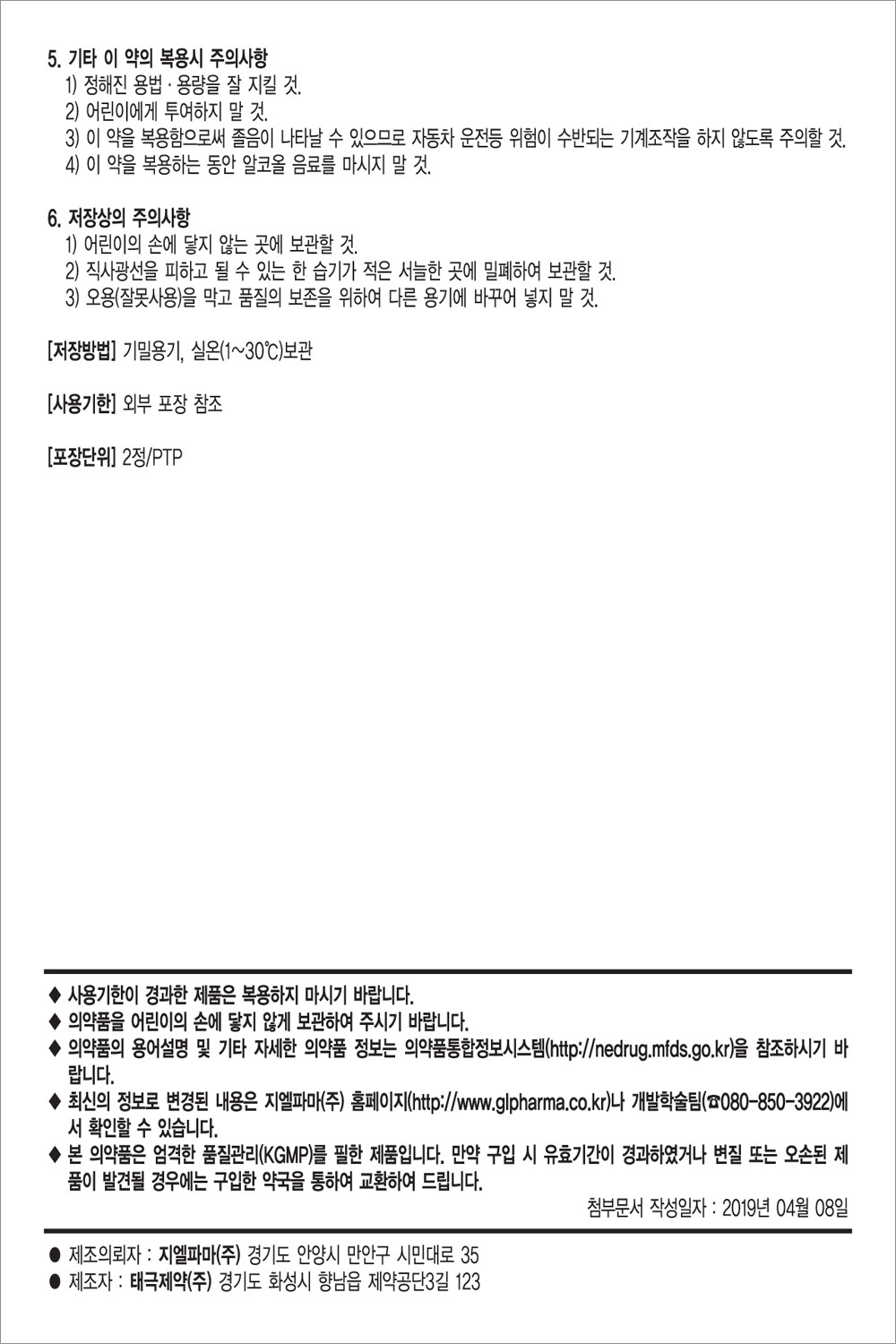 03) 이 약을 복용함으로써 졸음이 나타날 수 있으므로 자동차 운전등 위험이 수반되는 기계조작을 하지 않도록 주의할 것.