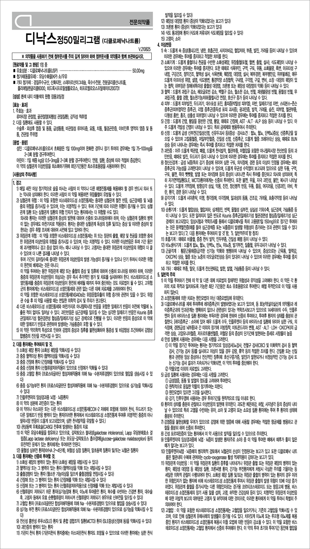 나. 의약품동등성시험기준 제7조제2항에 따라 시험약 디낙스정50밀리그램(디클로페낙나트륨)[지엘파마(주)]은 대조약 디낙스정(디클로페낙나트륨)[지엘파마(주)]과의 비교용출시험자료를 제출하였으며 대조약과 용출양상이 동등하였다. 이에 따라 해당 자료로서 생물학적동등성을 입증하였다.