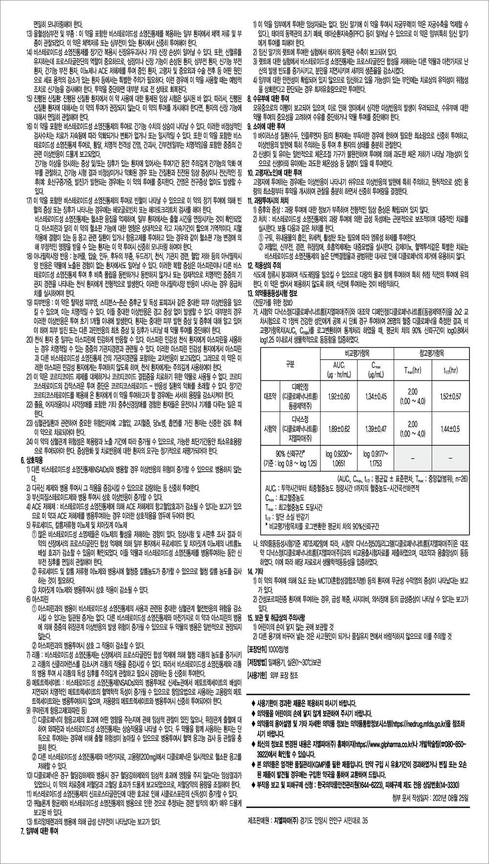 20) 천식 환자 중 일부는 아스피린에 민감하게 반응할 수 있다. 아스피린 민감성 천식 환자에게 아스피린을 사용하는 경우 치명적일 수 있는 중증의 기관지경련과 관련될 수 있다. 이러한 아스피린 민감성 환자에게서 아스피린과 다른 비스테로이드성 소염진통제 간의 기관지경련을 포함하는 교차반응이 보고되었다. 그러므로 이 약은 이러한 아스피린 민감성 환자에게는 투여하지 않도록 하며 천식 환자에게는 주의깊게 사용하여야 한다.