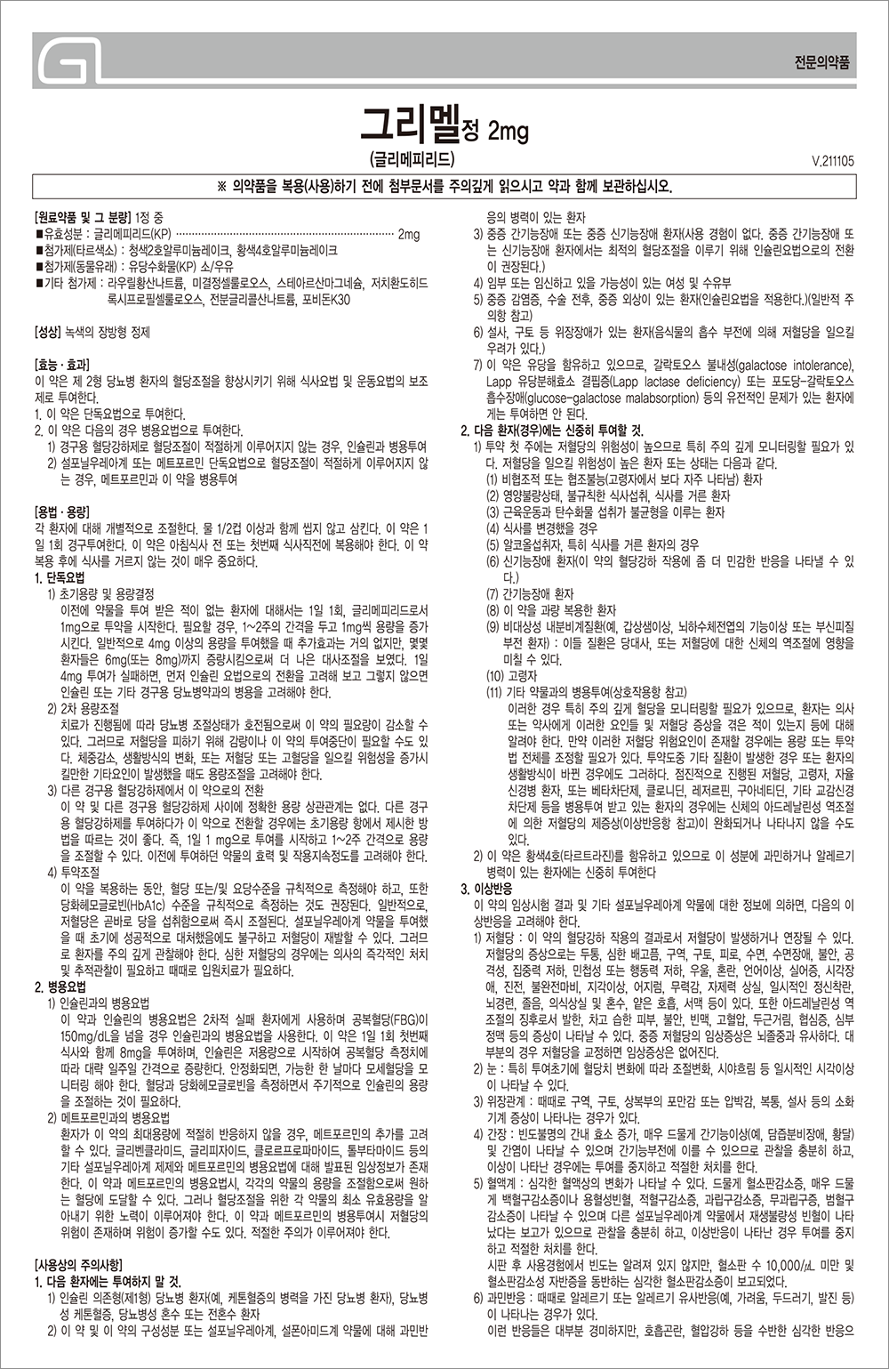 (주1) 이 약은 (주)팜젠사이언스 글루펜정2mg(글리메피리드)과 동일한 원료를 사용하여 동일한 제조방법으로 전 공정을 (주)팜젠사이언스에 위탁 제조하였음.