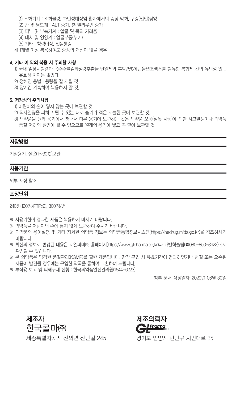 01) 국내 임상시험결과 옥수수불검화정량추출물 단일제와 후박75%에탄올연조엑스를 함유한 복합제 간의 유의성 있는 유효성 차이는 없었다.
